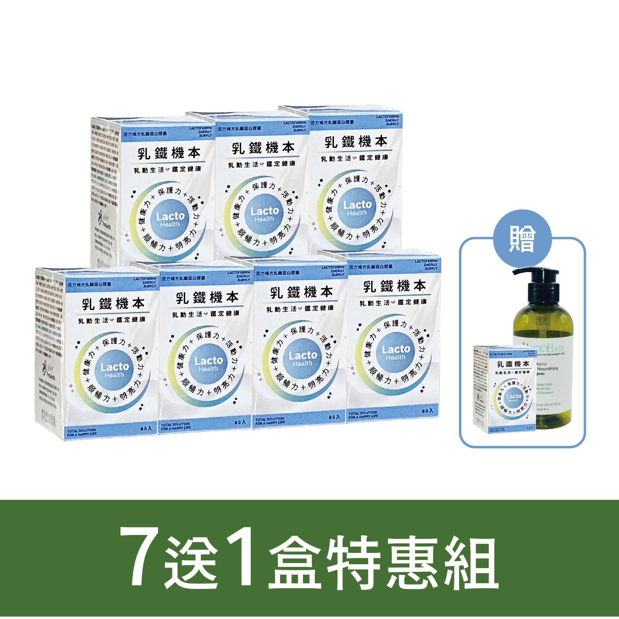 組合規格:乳鐵機本7+1盒、樂多髮-乳鐵蛋白頭皮養護洗髮精1瓶