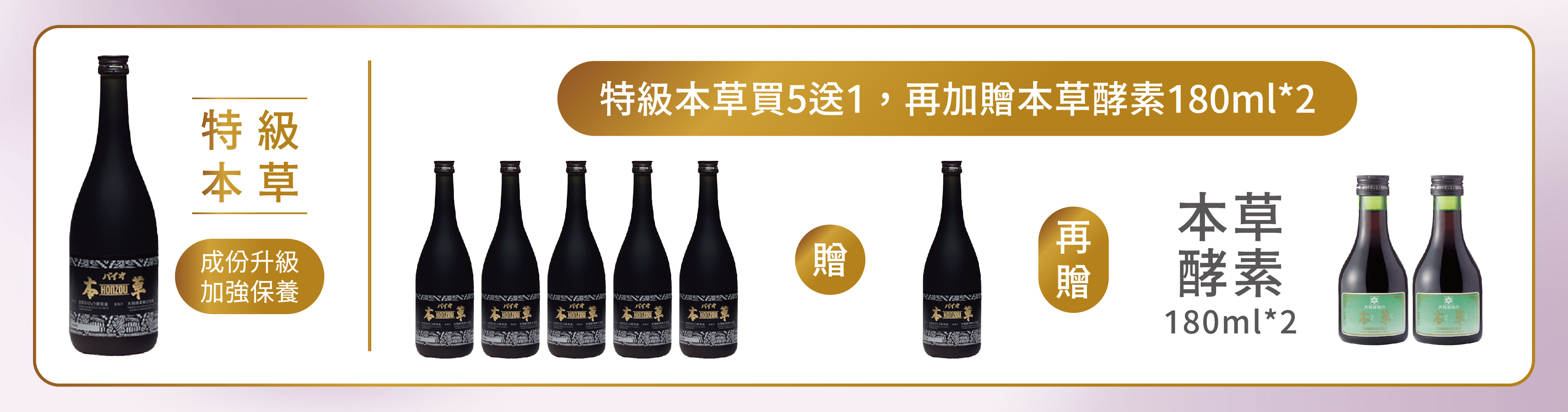 嚴選高麗人蔘、北海道刺五加、紫蘇、桂皮、薄荷……等十餘種珍貴草本植物,配合數十種新鮮蔬果、高山植物類、海藻類,利用獨創之低糖發酵技術,富含良質綜合酵素群,胺基酸、維生素、礦物質。